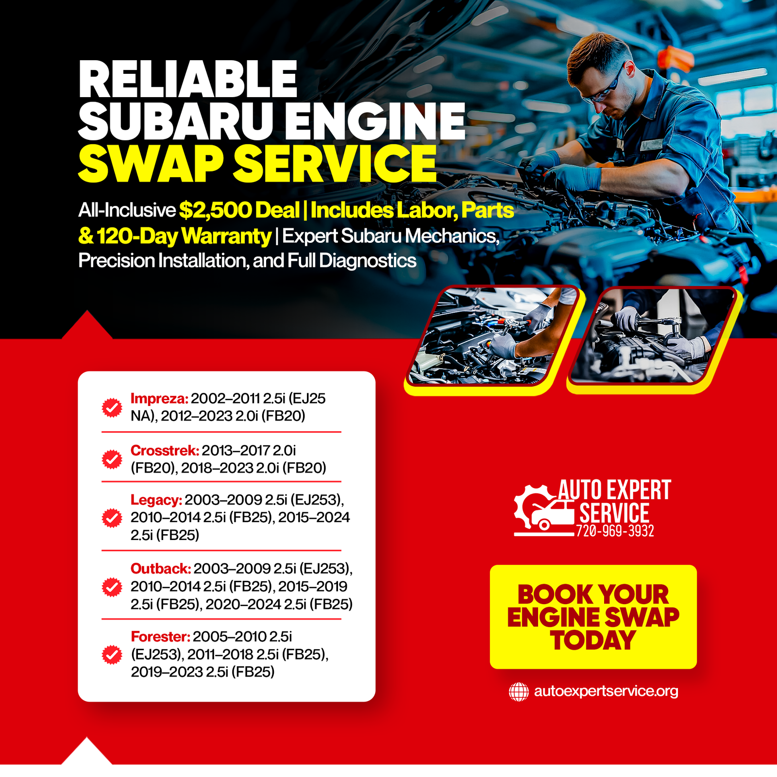 Reliable Subaru Engine Swap — $2,500 All-In Includes labor, parts & 120-day warranty